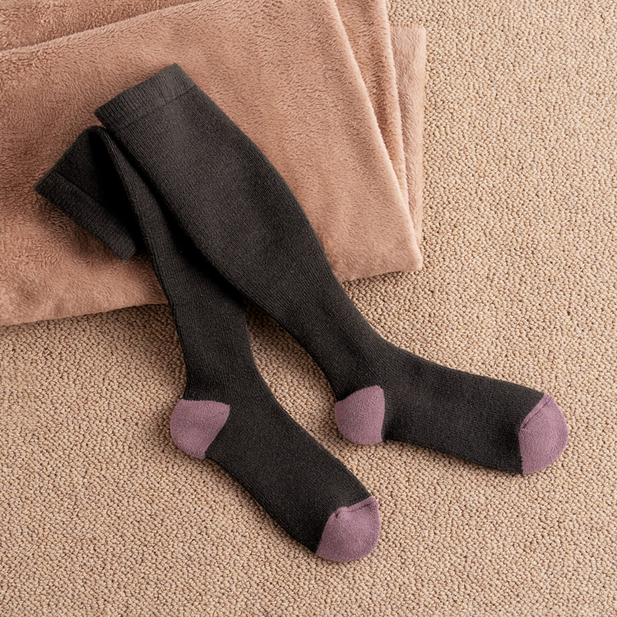 どんなスタイルにも合わせやすいチャコールブラックカラーに、つま先とかかとはモーブカラーで切り替えた気分華やぐデザインで、日常的なからだケアを応援します。