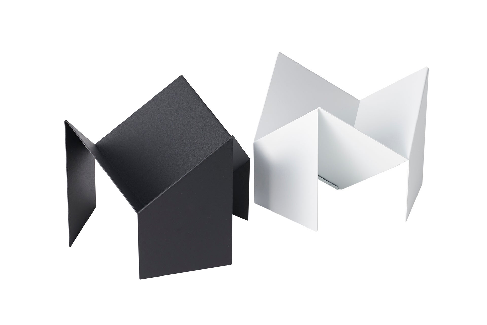 新製品【 3/6(スリーシックス)】は、同じ形に折り曲げたスチール製の板材を3 枚組み合わせることで生まれた、シンプルでありながら存在感のあるブックスタンドです。