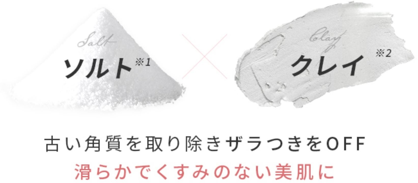 鳴門産ソルトのまだらな粒子が不快臭の原因*を取り除き、浄化作用を持つホワイトクレイで毛穴の汚れや古い皮脂を洗浄することでニキビを予防。グリチルリチン酸2Kやハリ弾力をUPさせるプラセンタも配合。洗浄することで表面のザラツキ、黒ずみをケアしながら滑らかな肌に。