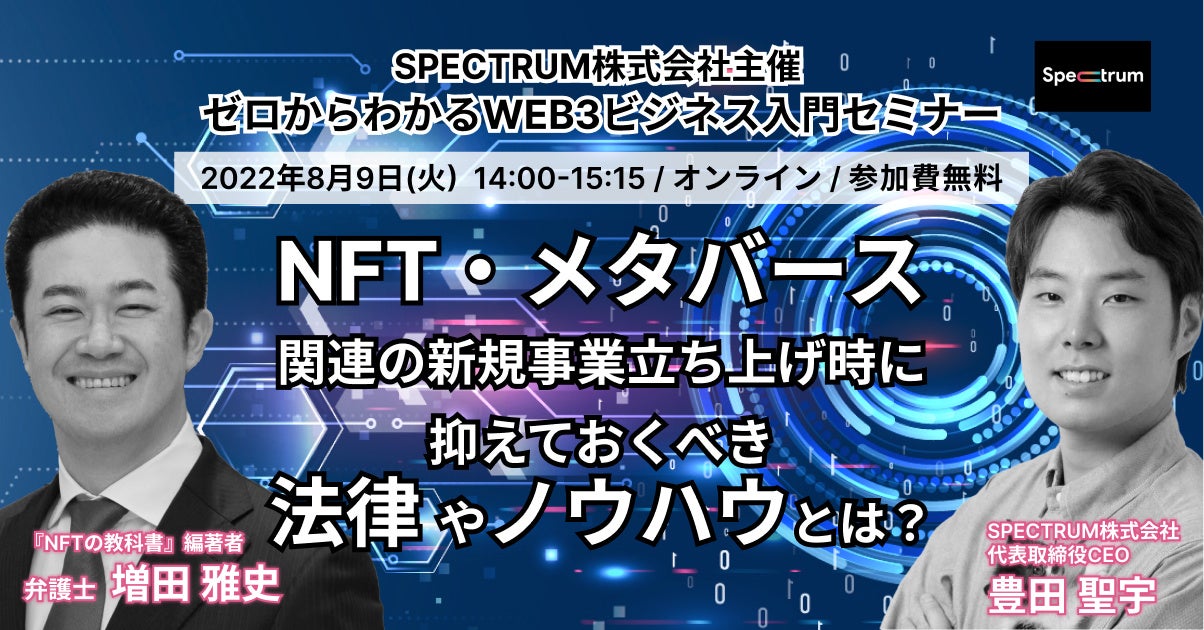 SPECTRUM × 『NFTの教科書』編著・増田雅史弁護士「NFT・メタバース関連の新規事業立ち上げ時に抑えておくべき法律やノウハウとは?」セミナー開催のお知らせ