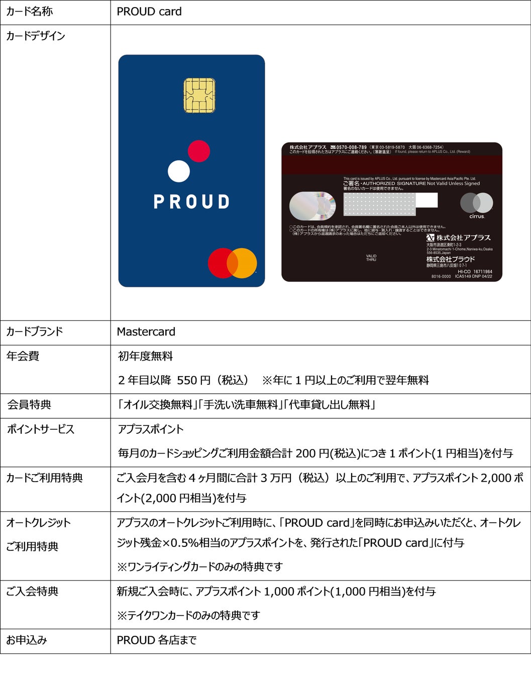 お手頃中古車専門店プラウド、新生銀行グループ アプラスとの提携クレジットカード「PROUD card」を発行開始!