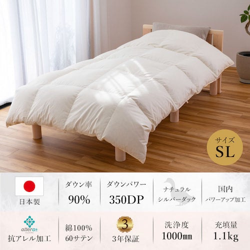 - 適度な保温性:ダウン率90%、ダウンパワー350、羽毛充填量1.1kgで適度な保温性を発揮します。木造一軒家にお住まいの方には不向きですが、マンションにお住まいの方に適度な暖かさで快適にご使用いただける保温性スペックに設計しました。
