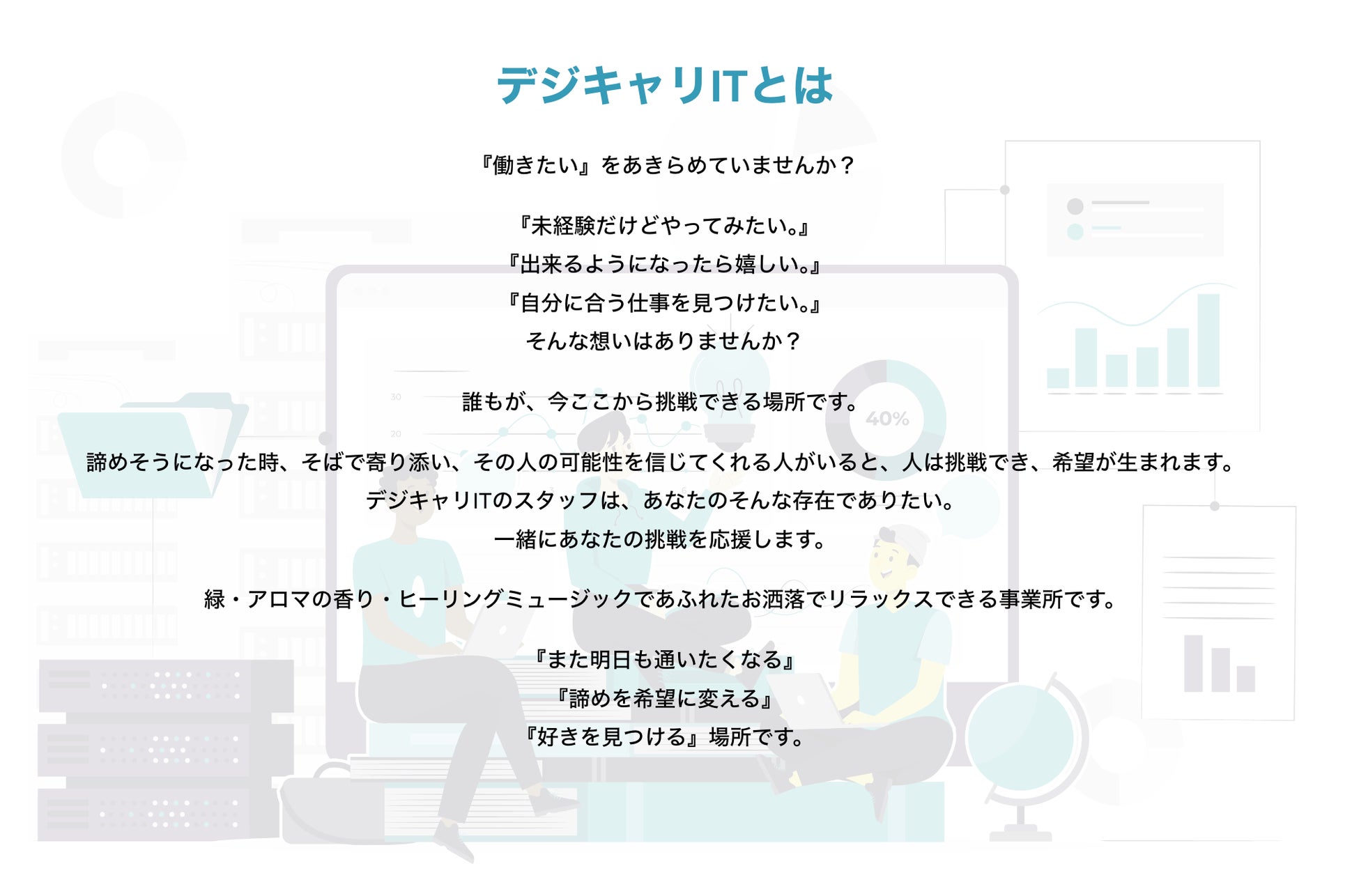 誰もがITの未来に挑戦できる場所として、デジキャリIT就労移行支援をOPEN致しました。