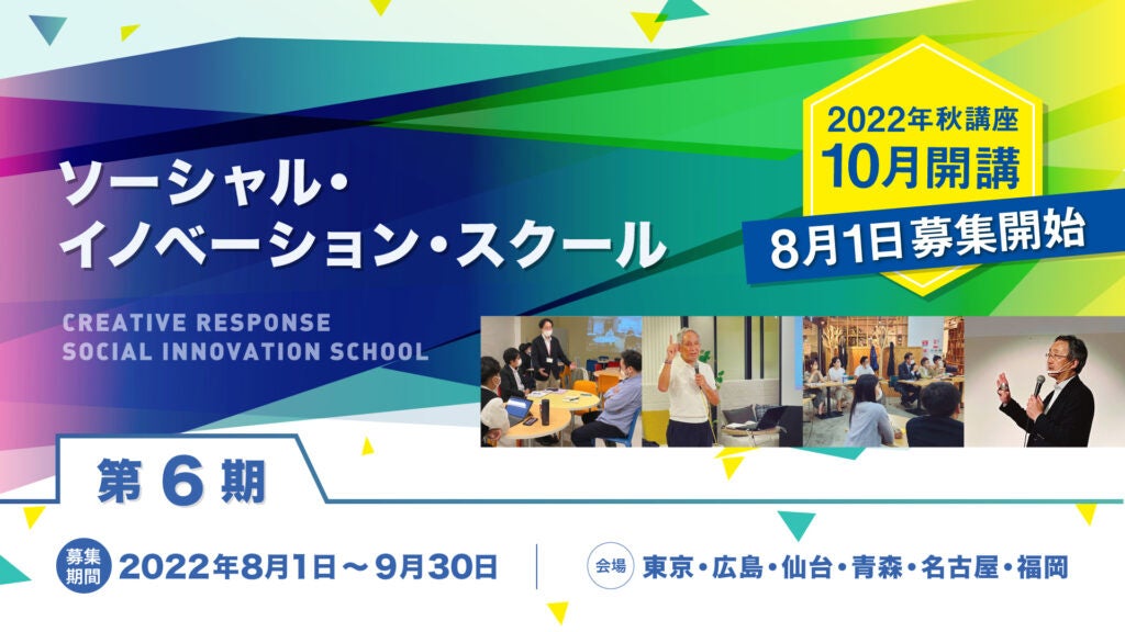 8月1日募集開始!社会課題を解決する想像力と創造力に富んだ人材を育成するソーシャル・イノベーション・スクール第6期を全国6拠点で10月開講。学生・教員を対象とした奨学制度も。