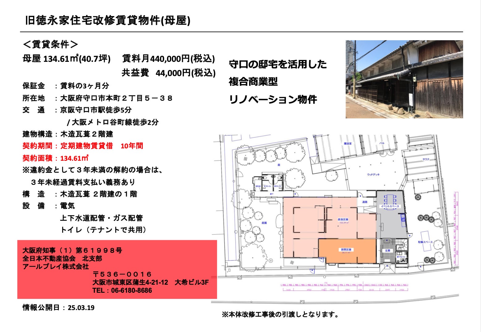 【歴史ある大阪・守口宿を“まちの居場所”へ。】旧徳永家住宅を再生した複合施設『燈森』が5月オープン。観光・地域のにぎわい拠点としてテナント募集中!
