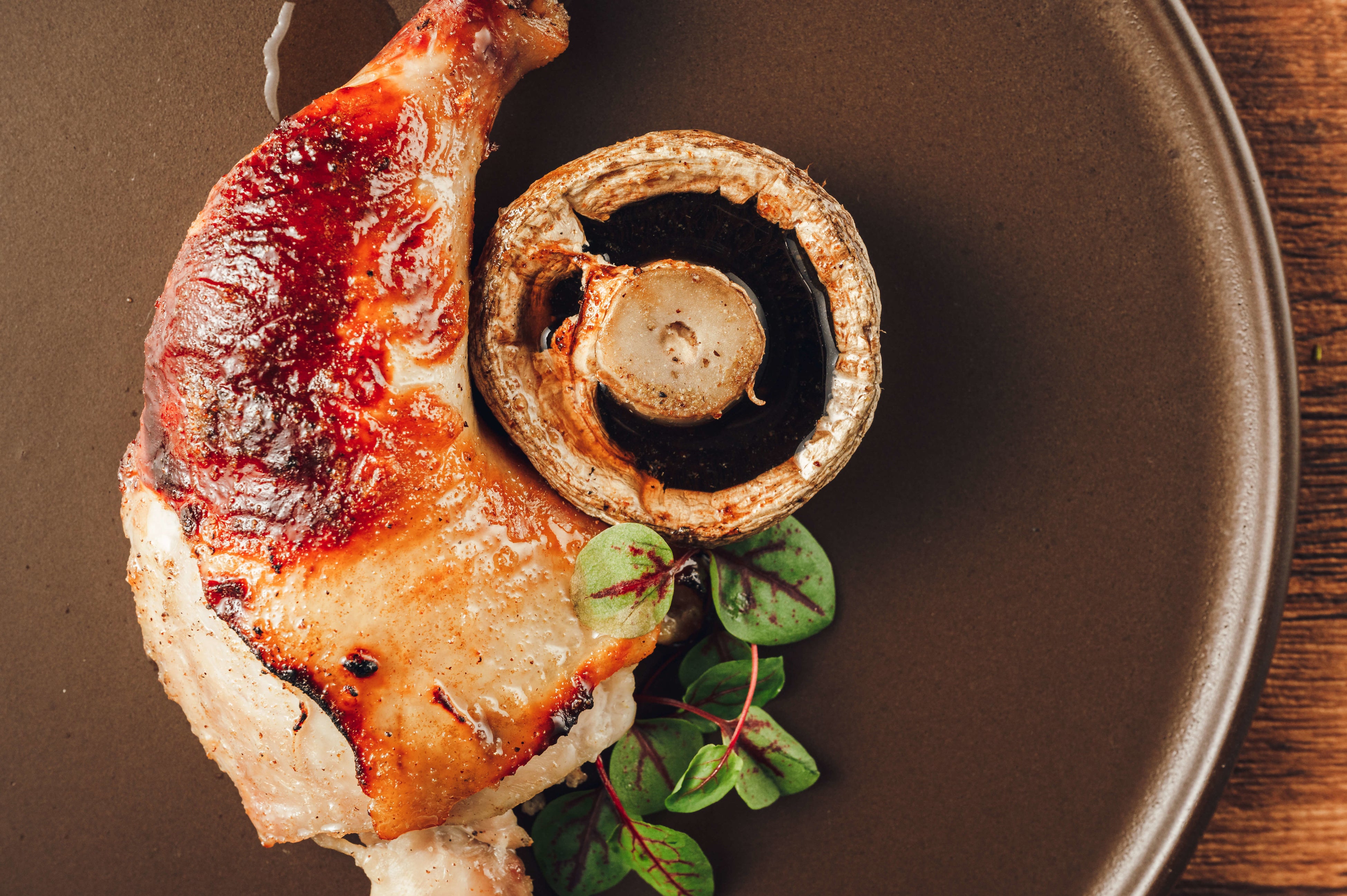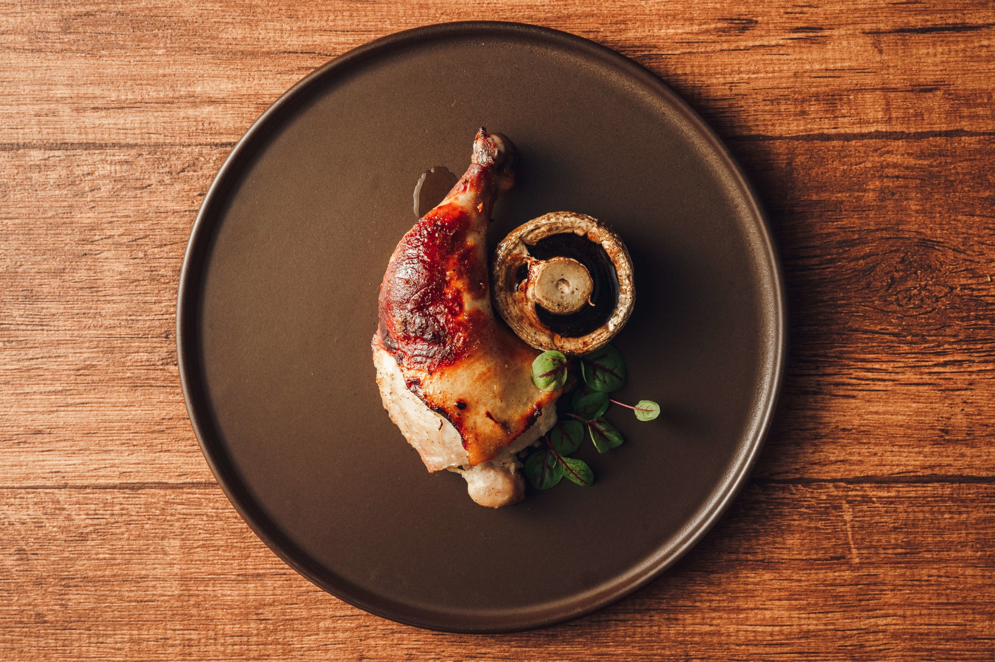 ◆マッシュルームのグリルとチキンレッグのコンフィ 〜グリーンソース〜