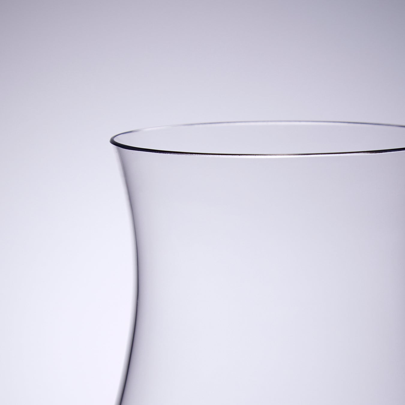 グラスの口元を少し広げることによって、テイスティングする際に口の中に入ってくるお酒の量をコントロールしやすい設計となっています。サイズの大きいグラスはどうしても口に運ぶスピードのコントロールが難しく、毎回口の中に入ってくるお酒の量が変わってしまいます。 グラスの口元の広がりにより、舌の手前にお酒を落とし、舌全体で細かな味わいの要素をしっかり感じとることができます