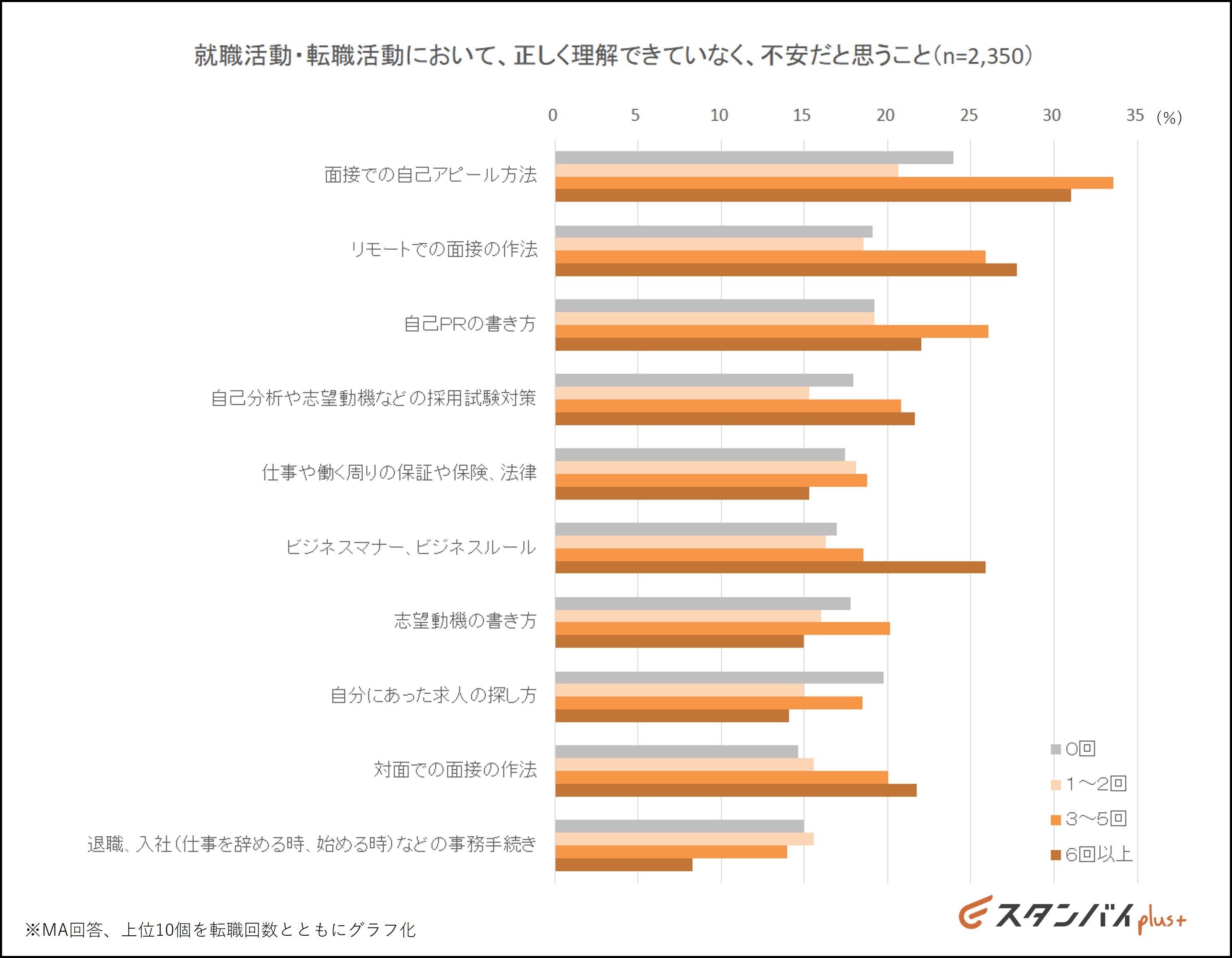続いて、「就職活動・転職活動において、正しく理解できていなく、不安だと思うこと」について聞きました。