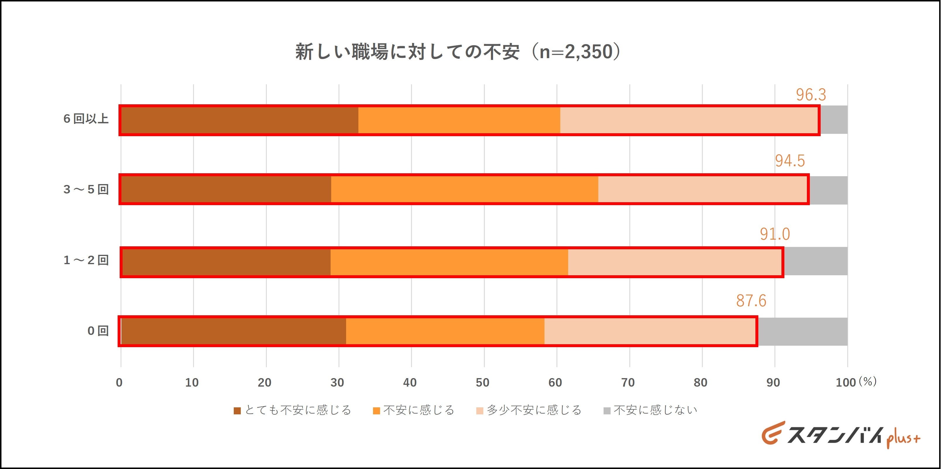 仕事に関する意識調査も合わせて発表。転職回数に関わらず、新しい職場に対して9割以上が不安を感じる