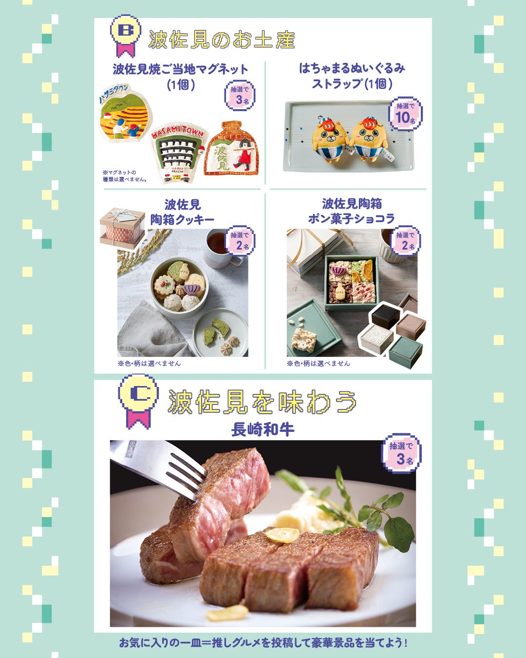 さらに、ランチ写真の投稿やスタンプラリー応募で、波佐見での体験や波佐見焼、グルメセットなどなど豪華プレゼントが盛りだくさん。見て、食べて、買って、プレゼントをゲット! "波佐見推しグルメ [ランチ&スイーツフェア]"をお楽しみください。