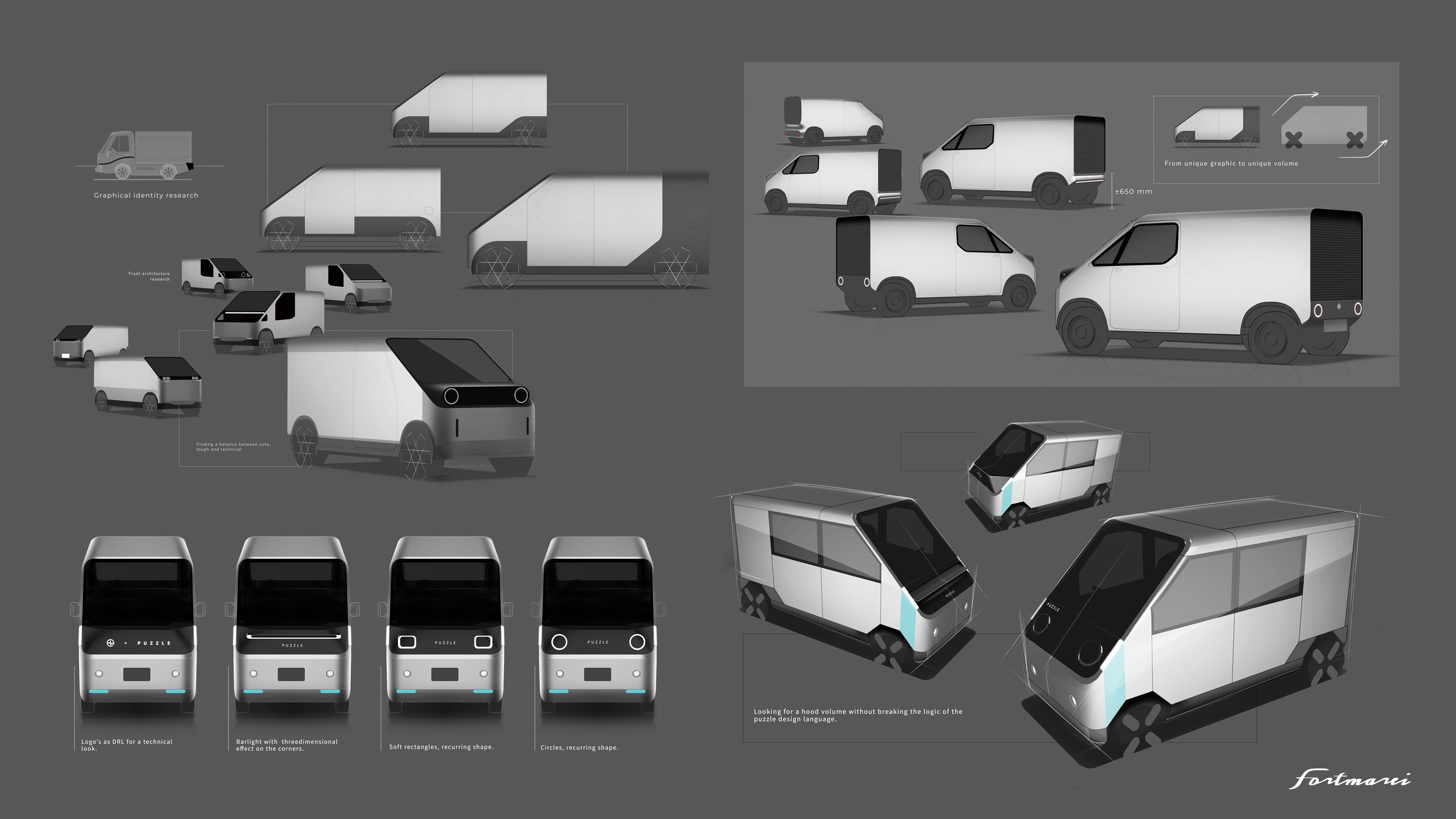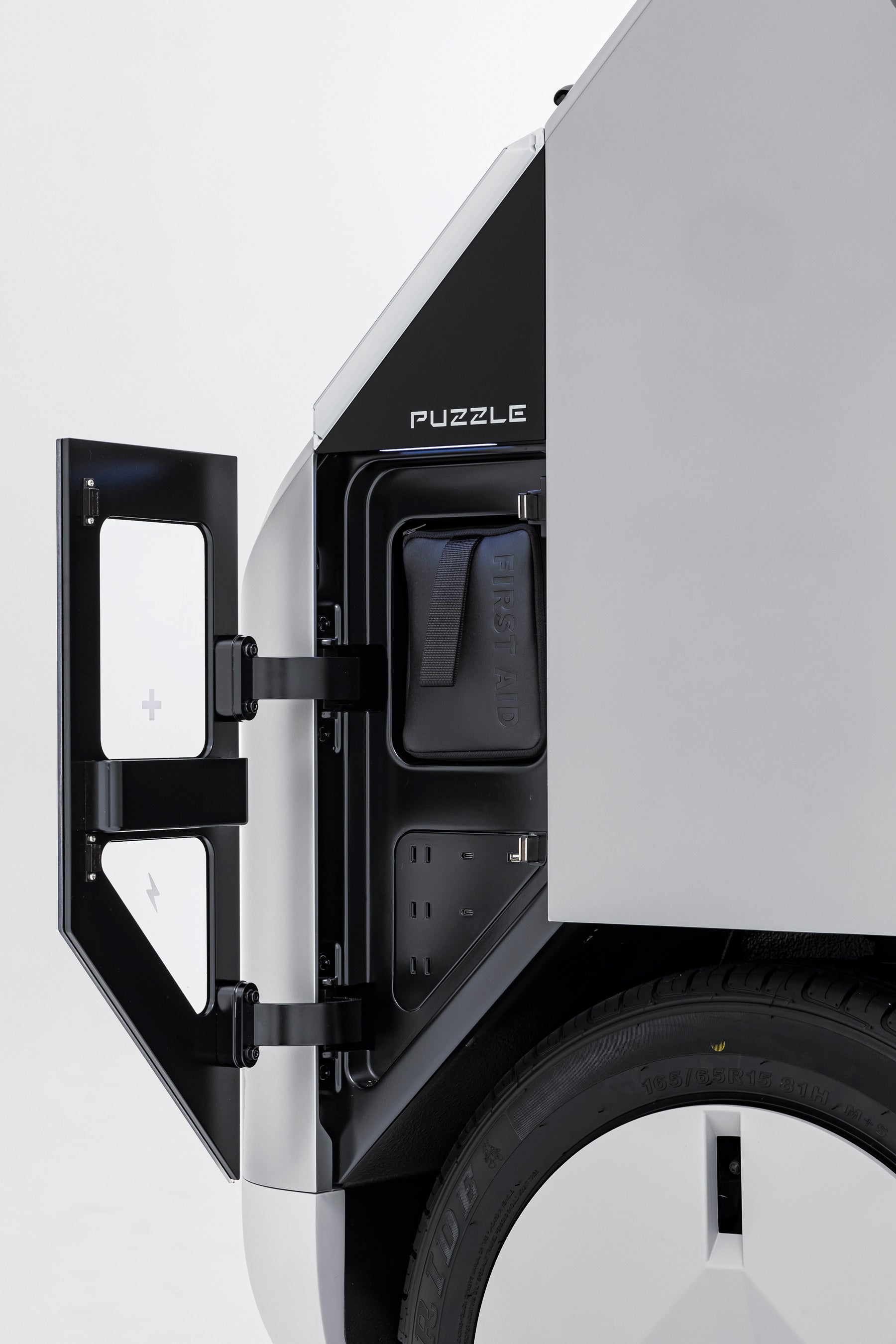 「PUZZLE」は独自のデザイン手法によって獲得したユニークでシンプルな外観と、ELEMOから引き継いだ親しみやすい表情とが融合し、すべての人と社会に貢献する軽商用EVとして完成されました。