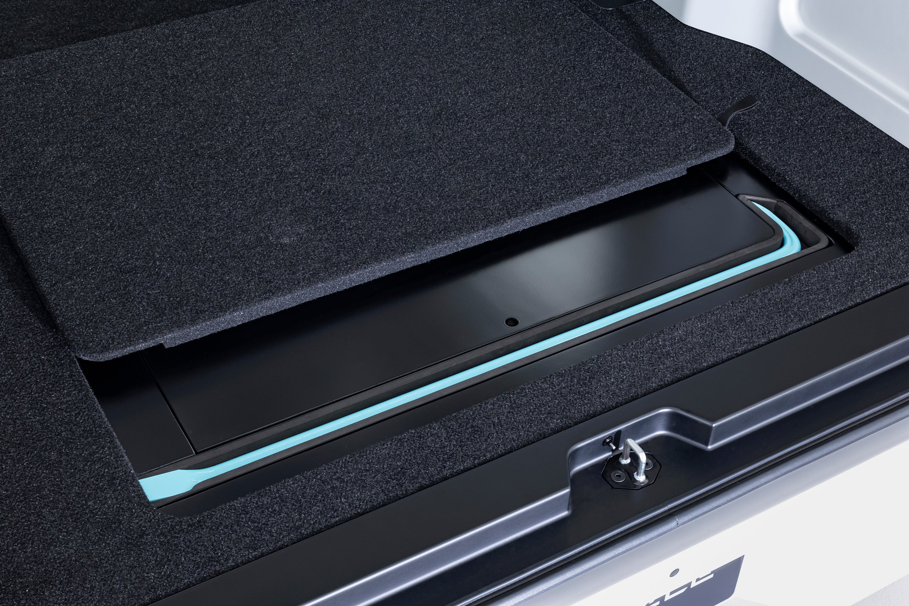 これら4つの原理に従ってデザインされた荷室スペースは、軽自動車の規格寸法を最大限活用した無駄のない立方体の形状となっており、効率的な荷物の積み込みを可能にします。また内装のダッシュボード、ドアトリムのフラット面はピンボード機能を有しており、必要な機能を必要な場所に必要な個数だけ配置することができます。これも無駄をなくしコストを削減する取り組みの一つです。