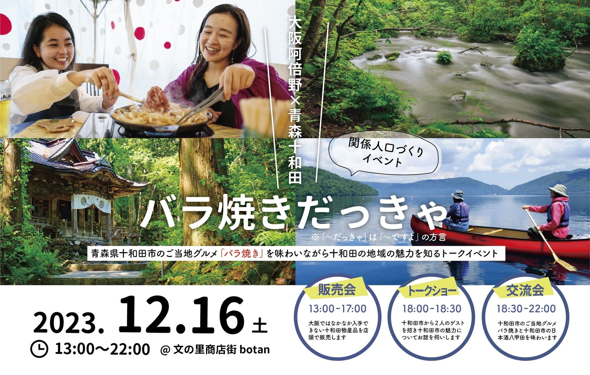 12月16日(土)青森県十和田市のご当地グルメ「ばら焼き」を味わいながら、十和田の地域の魅力を知るトークイベント「大阪阿倍野×青森十和田 バラ焼きだっきゃ」を開催します