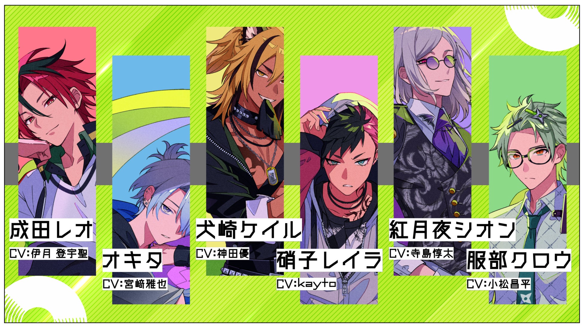 一般オーディションから選ばれた新星と、実力派の声優陣が集結!6名のキャラクターたちが、それぞれの個性で物語を盛り上げます。公式サイトでは、ボイスサンプルやキャラクター設定を公開しております。