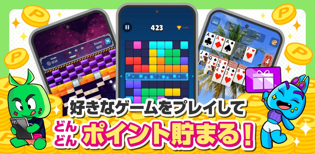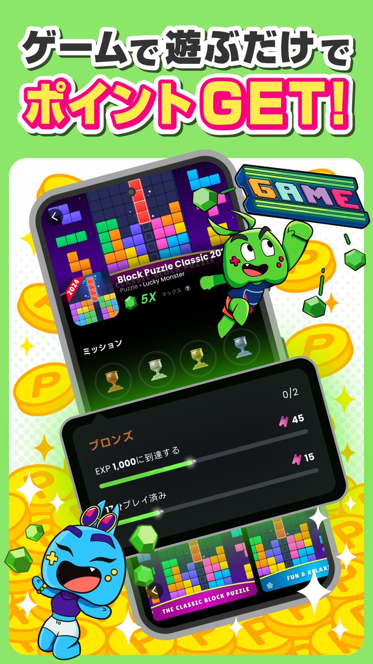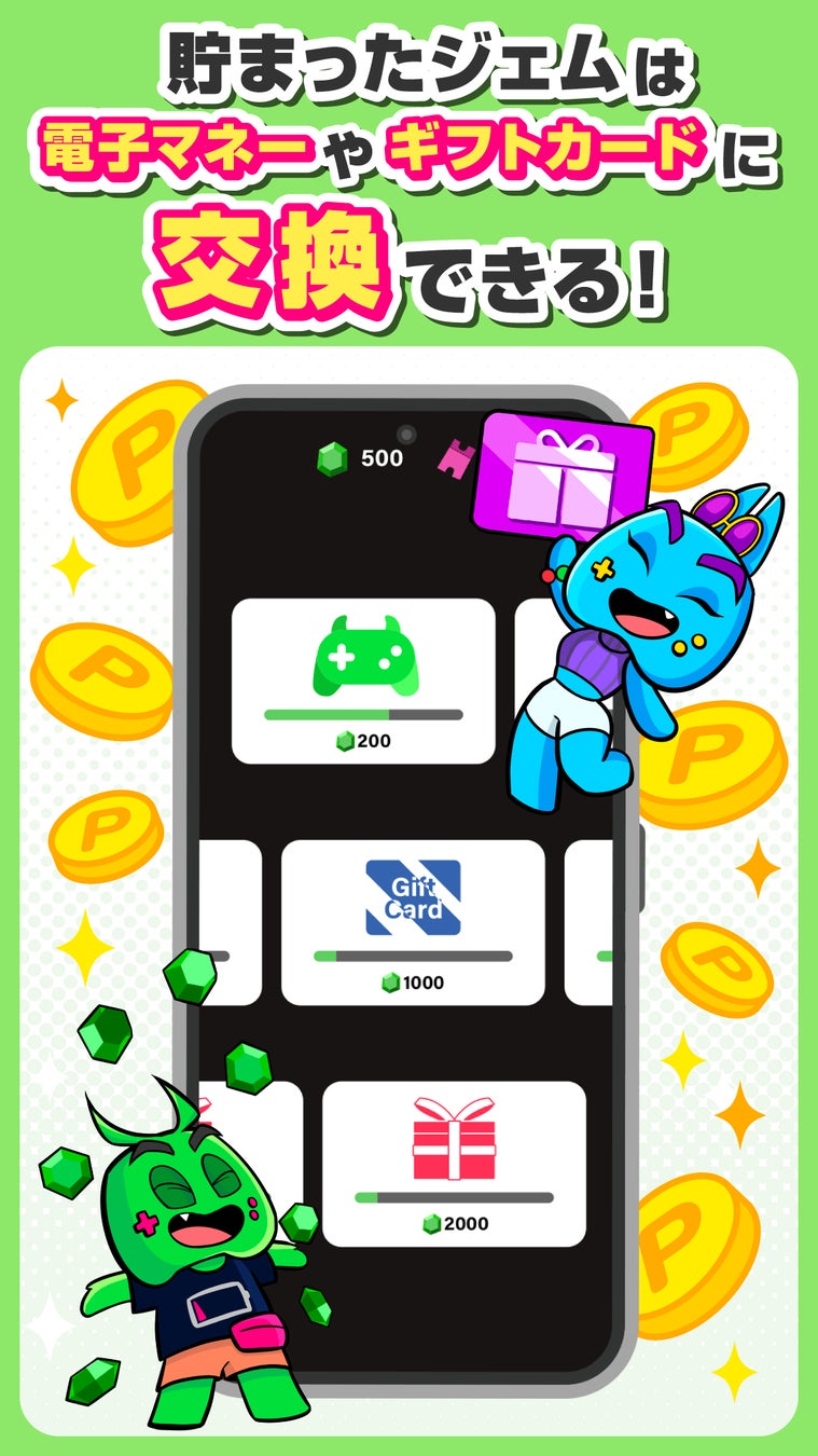・好きなゲームをプレイするだけで「ジェム」を受け取ることができます。