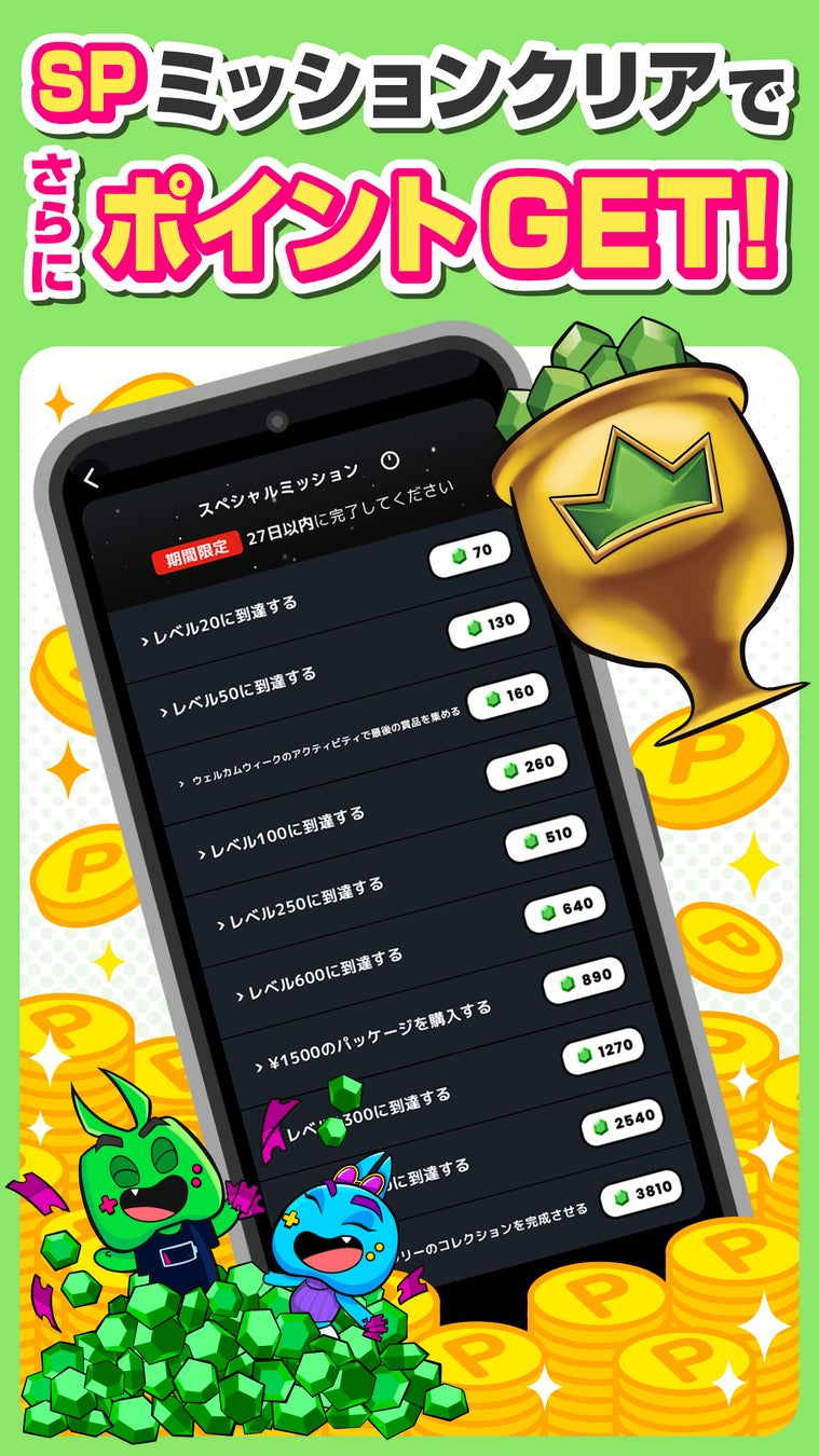 ・ゲーム内の特定の行動ミッションをクリアすることで、さらに多くの「ジェム」を受け取ることができます。