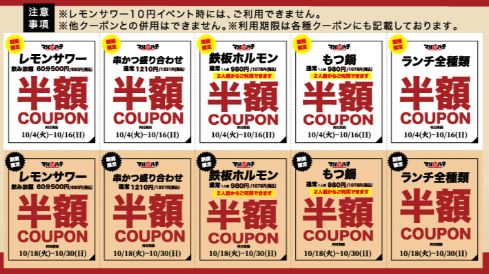 - 第2弾 一部メニューが半額!!(10/4~10/30まで)