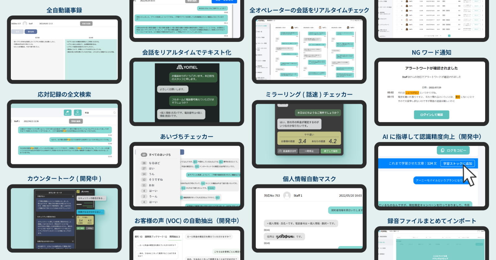 そのような状況下で、研究開発型のスタートアップとして音声領域のAI研究を続けてきた弊社は、高い精度を誇る音声認識AIおよび文章要約AIの開発に成功し、これらの技術を駆使して上記のような社会課題を解決できると確信し、プロダクト開発をスタートしました。その後、コールセンターの現場ヒアリングを繰り返し、それをプロダクトに反映させるというサイクルを1年間ほど続け、今回正式に「YOMEL for コールセンター」のサービスを開始することとなりました。