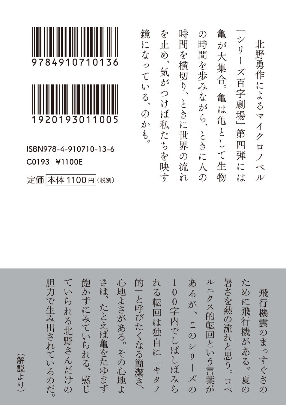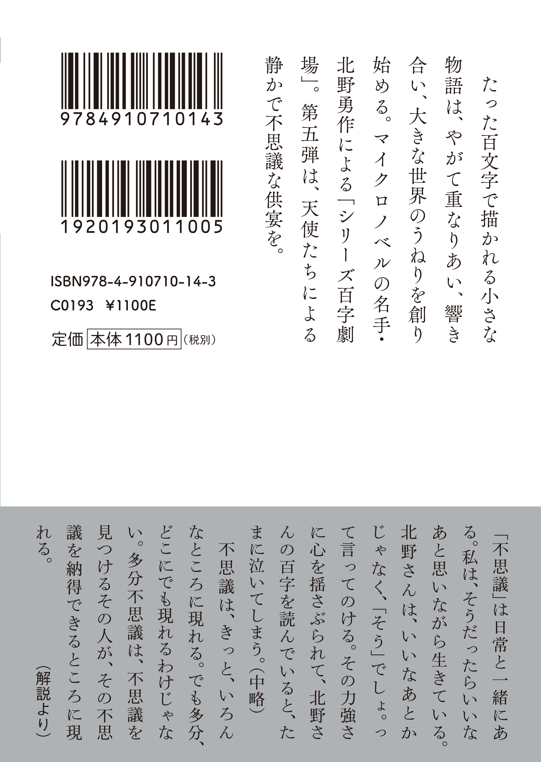 短い中にも深い感動と独創的な世界観を持ち、老若男女を問わず楽しめる「シリーズ百字劇場」。北野勇作の新作がもたらす新しい読書体験を、ぜひお楽しみください。