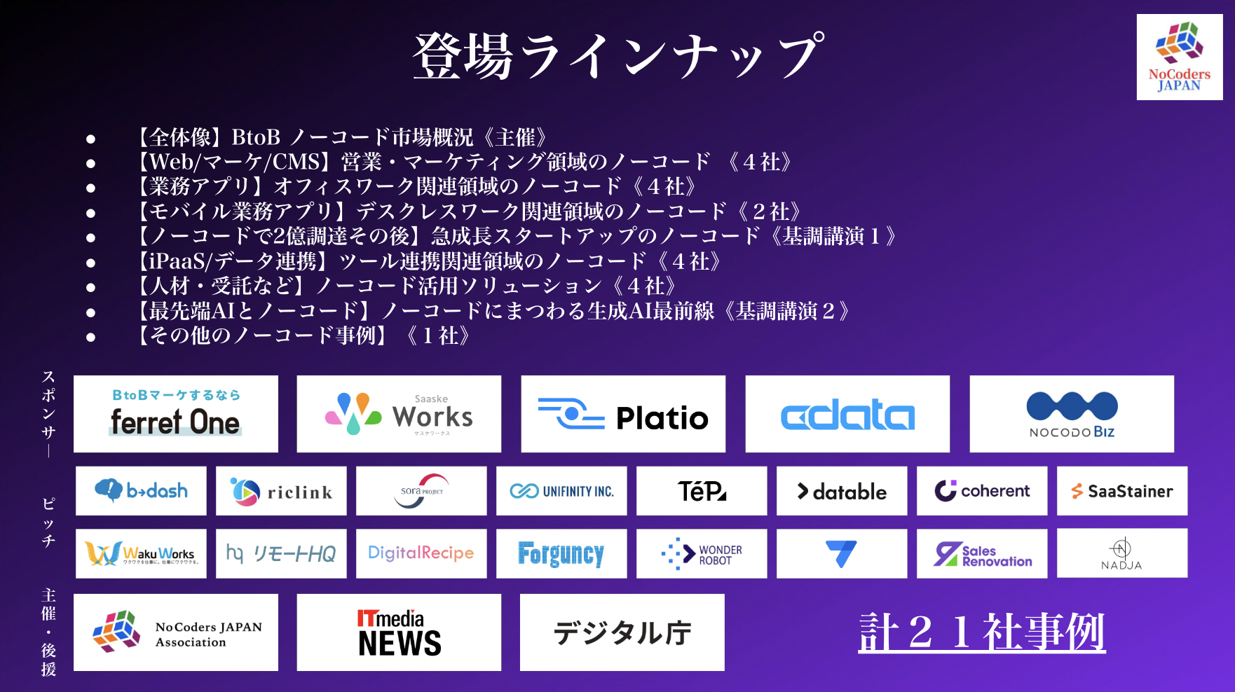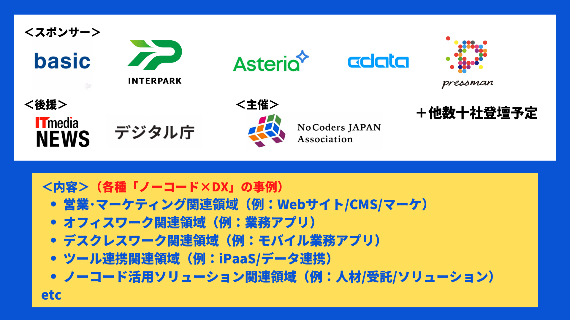 ※ピッチ枠の募集も行っていますので、ノーコード事例をお持ちの企業様はぜひ応募ください