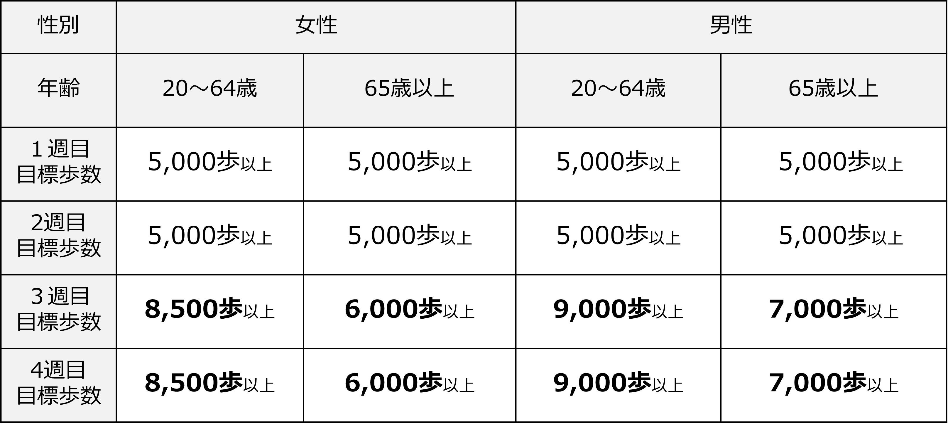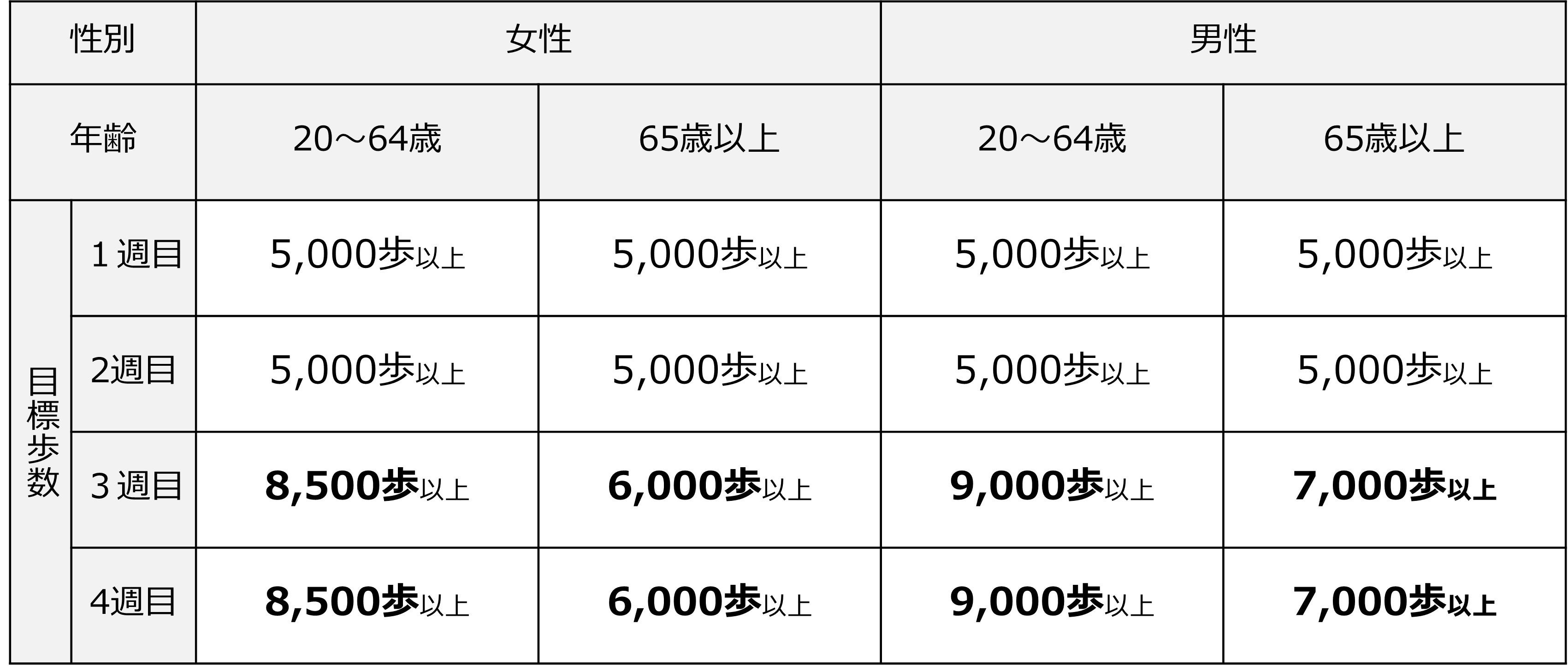 目標歩数を7日間のうち5日間、目標歩数を歩くとチャレンジ達成