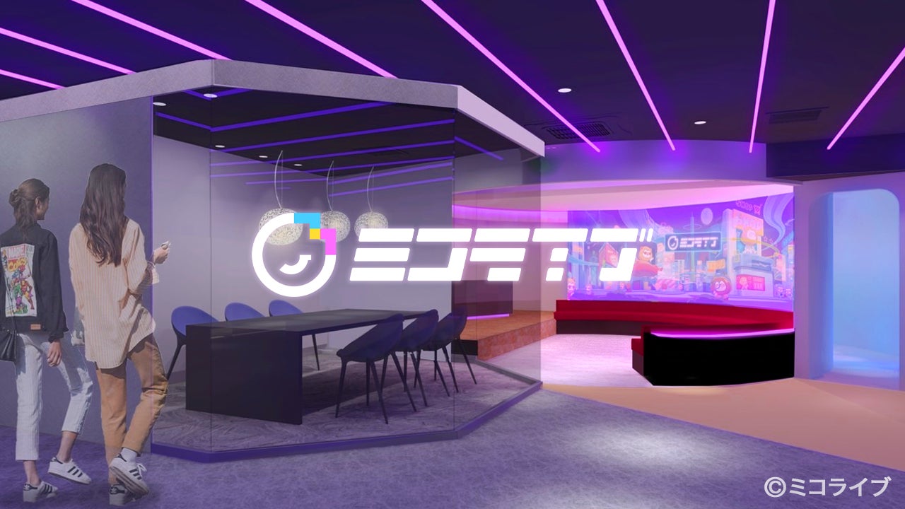 撮影スタジオ、配信ステージ、ライブコマース舞台、ミコライバーラウンジ、オフィス機能を兼ね備えた
