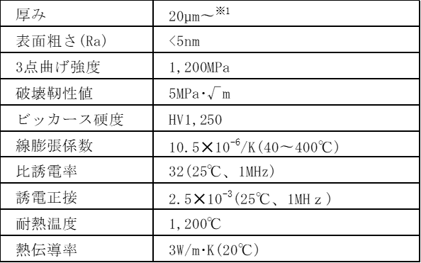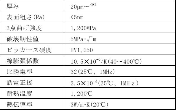 ※1 実績① 15mm✕15mm✕15µm 実績② 55mm✕91mm✕30µm(名刺サイズ)