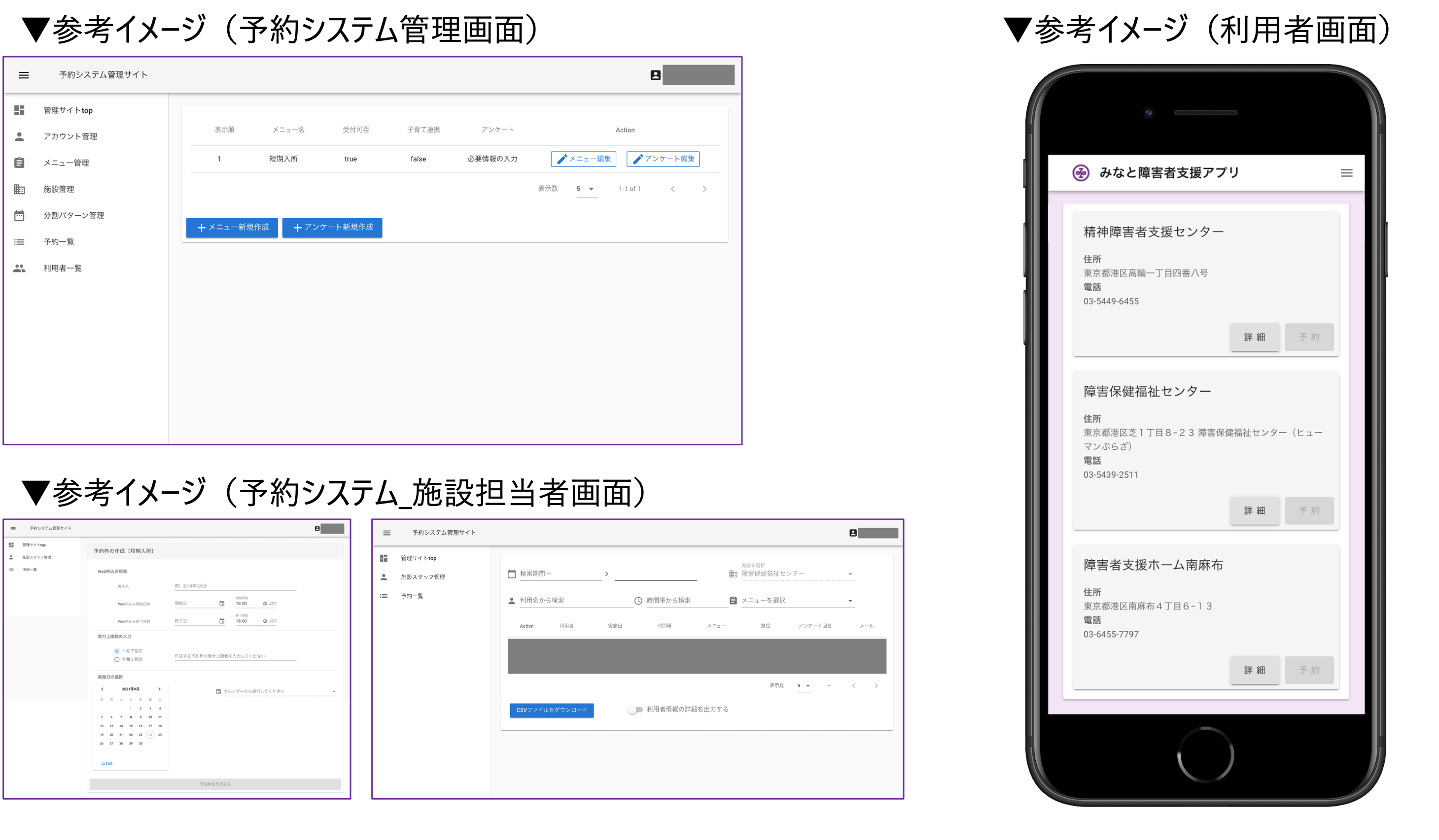 ※各導入先の自治体の実情にあわせて、短期入所施設以外の予約管理も可能です。