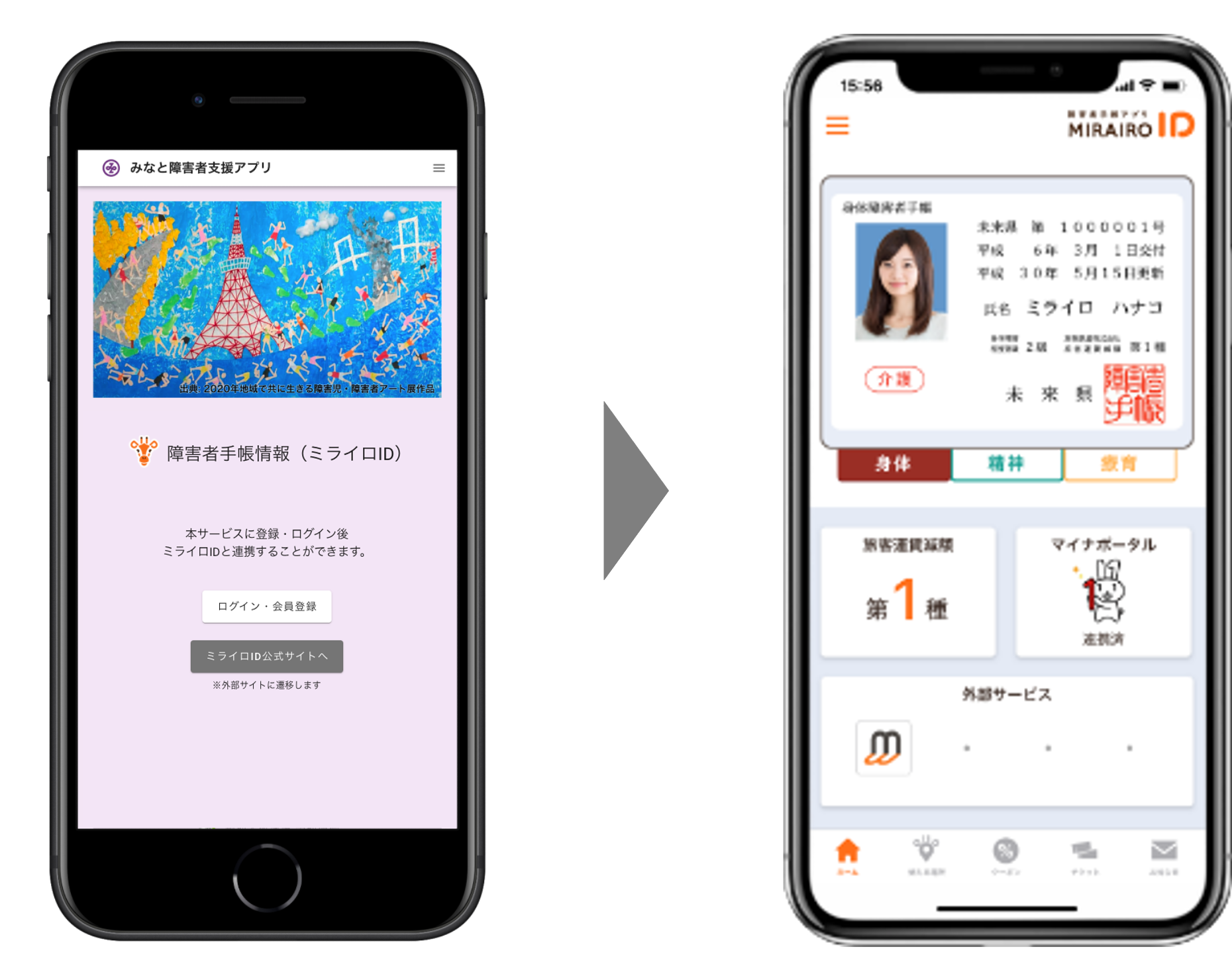 障害者支援アプリからワンクリックで、デジタル障害者手帳「ミライロID」を表示できるようになります。