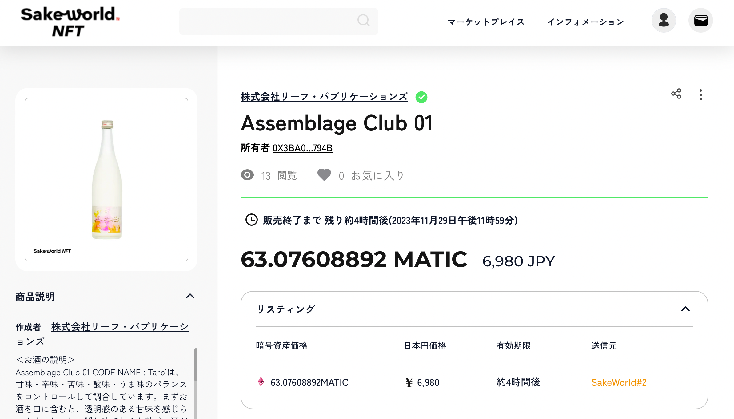 國酒のひとつである⽇本酒は、新酒の価値が⾼いとされる酒類ですが、昨今では「熟成」による楽しみ⽅が広がっています。ワインやウイスキーと同じように、熟成することでまろやかになり、時の経過の中でしか⽣まれない多様なフレーバーが複雑味を増し、趣向品としての価値が上がる可能性が期待されています。 本サービスで購⼊する⽇本酒には熟成オプションがあり、最⾼で25年間、マイナス5℃で管理された熟成倉庫で「零下熟成」することが可能です。 購⼊者は保管中の酒の引き取り券をNFTで保持することになり、このNFTをユーザー間で売買することが可能となることで、個人間取引による二次流通市場が創出されます。