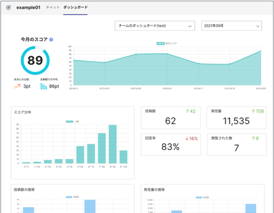 また、独自のAI技術により、発信した文章・回答を収集・分析し、発信量や頻度、内容を数値化することでメンバーのコンディションを可視化します。