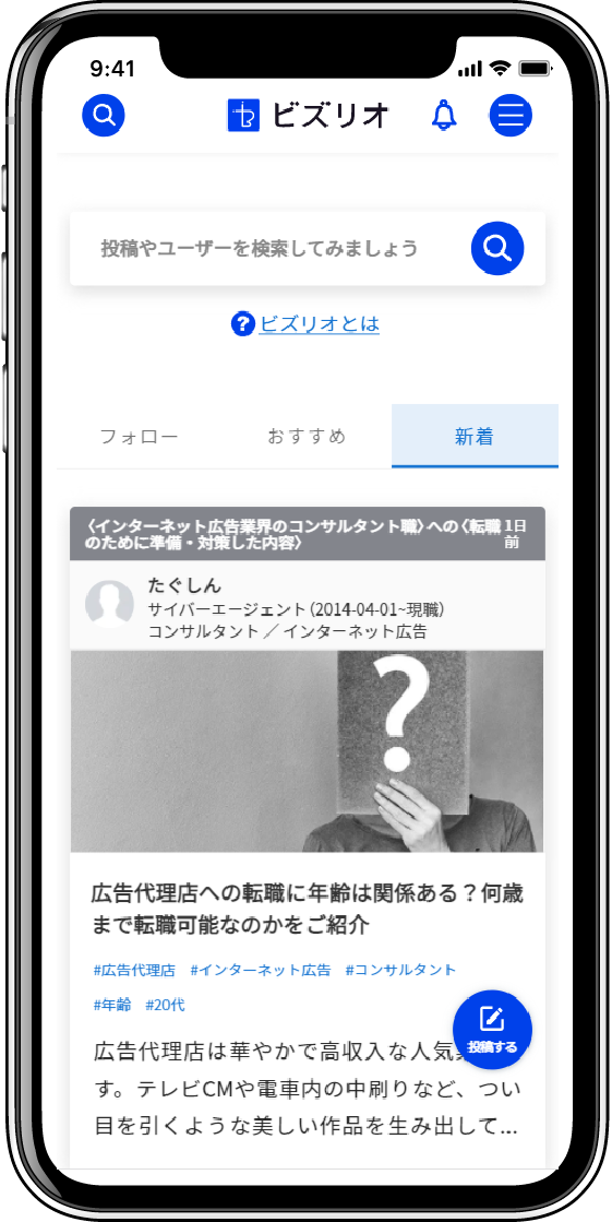 ユーザーによる「リアルな」転職経験談の投稿記事をフィードで追える