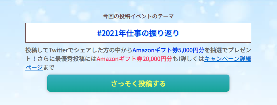 今回の投稿イベントでは、転職活動や仕事を通じて感じたこと、新しい挑戦をして実現できたことなど、2021年の仕事の振り返りについての投稿を募集します!