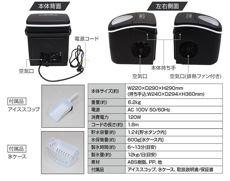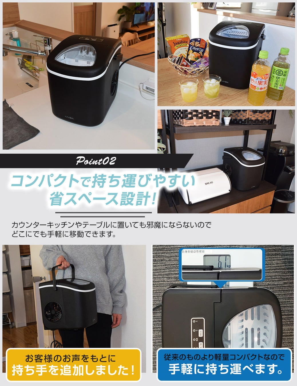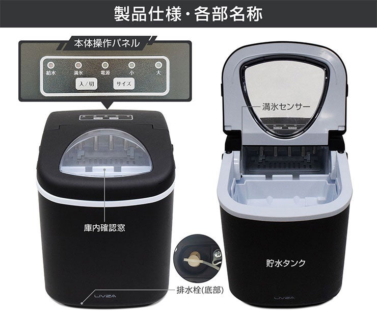炊飯器ほどのサイズで置き場に困らないコンパクトな製氷機。水を入れてスイッチを入れるだけの簡単操作。