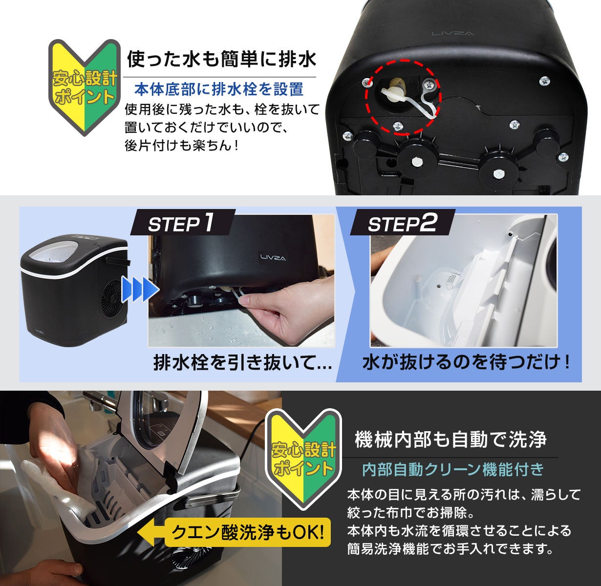 本製品の使い方は使い方は実に簡単!本体のタンクに水を注いで、作りたい氷のサイズを選ぶだけでOK!誰でも手軽に氷を作ることができます。