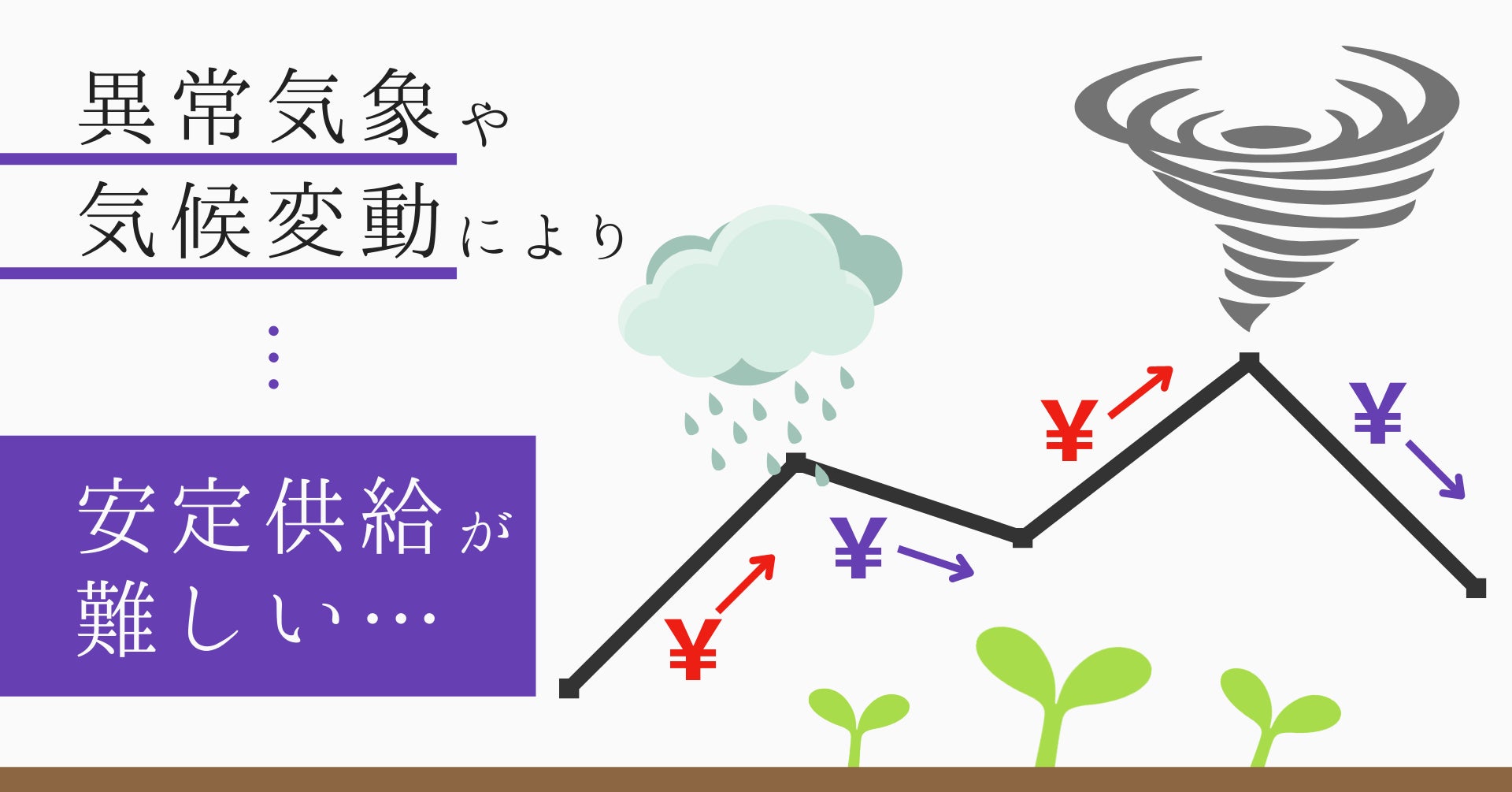 しかし、秋口には天候が安定し、生育が良くなり出荷量が増えると、今度は価格が一気に下がりました。 要は、気候条件などによって安定生産・安定供給が難しく、それは価格に影響するわけです。