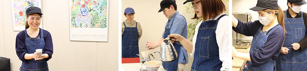 焙煎、抽出、サーブなど、コーヒーの技術をSGRの研修で磨くSZLHRのバリスタ達が、サザビーリーグ本社へ来社されるお客様を、コーヒーでおもてなしします。