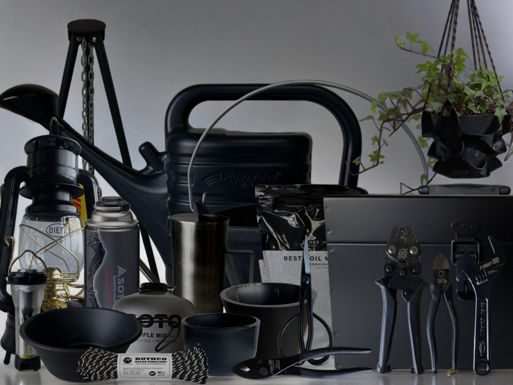 鉄の素材感やブラックカラーにこだわったアイテムを揃える。