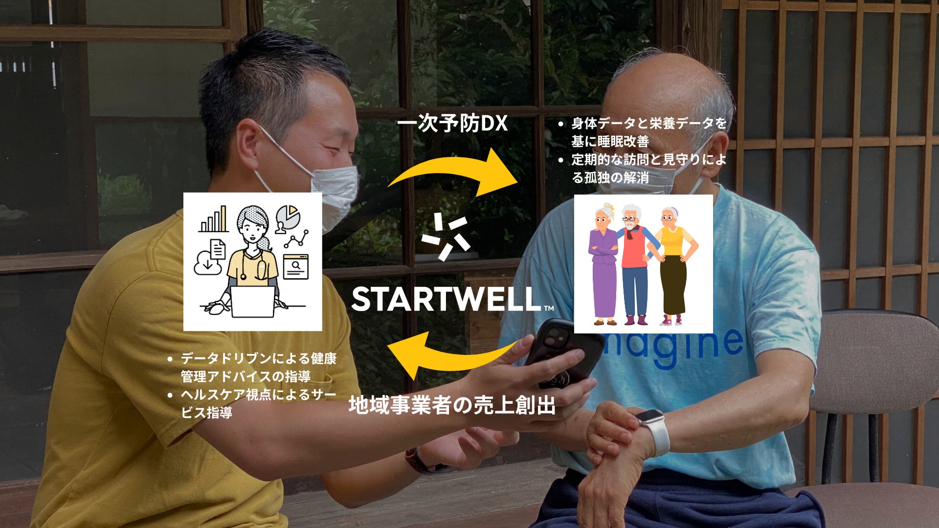 STARTWELL(スタートウェル)は、高齢者の健康不安や孤独・孤立の解決を目的とし、ウェアラブルデバイスから得られる身体データと尿検査キットから得られる栄養データを基にした健康管理アドバイスを、看護師がユーザー宅に月に1回訪問して行うヘルスケアサービスです。これまでのところ、独居高齢者ユーザーにおける解約率はゼロ%であり、「長寿命化」「医療費・介護費の抑制」という大きな時代の変化によって顕在化された顧客ニーズに応えられていると考えております。今回の「デジタル実装加速化プロジェクト」では、特に、独居高齢者の睡眠改善を図ることで高齢者のQOL向上と新たな産業づくりで社会的インパクトの創出を目指します。
