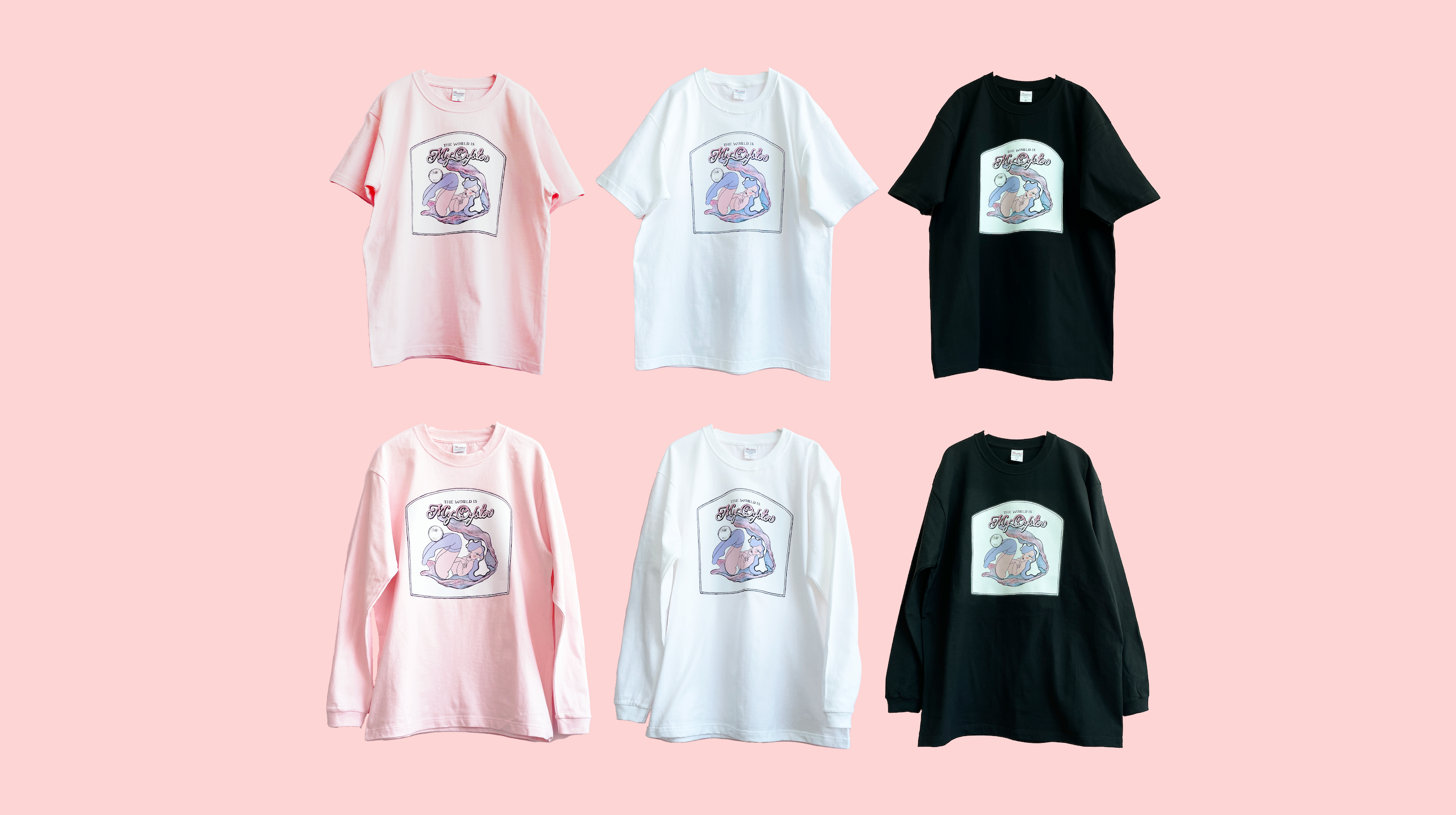 (上段)Oyster Girl by Kumi Takahashi T-Shirts / ¥4,950 (color:Pink / White / Black, size:M / L / XL)
