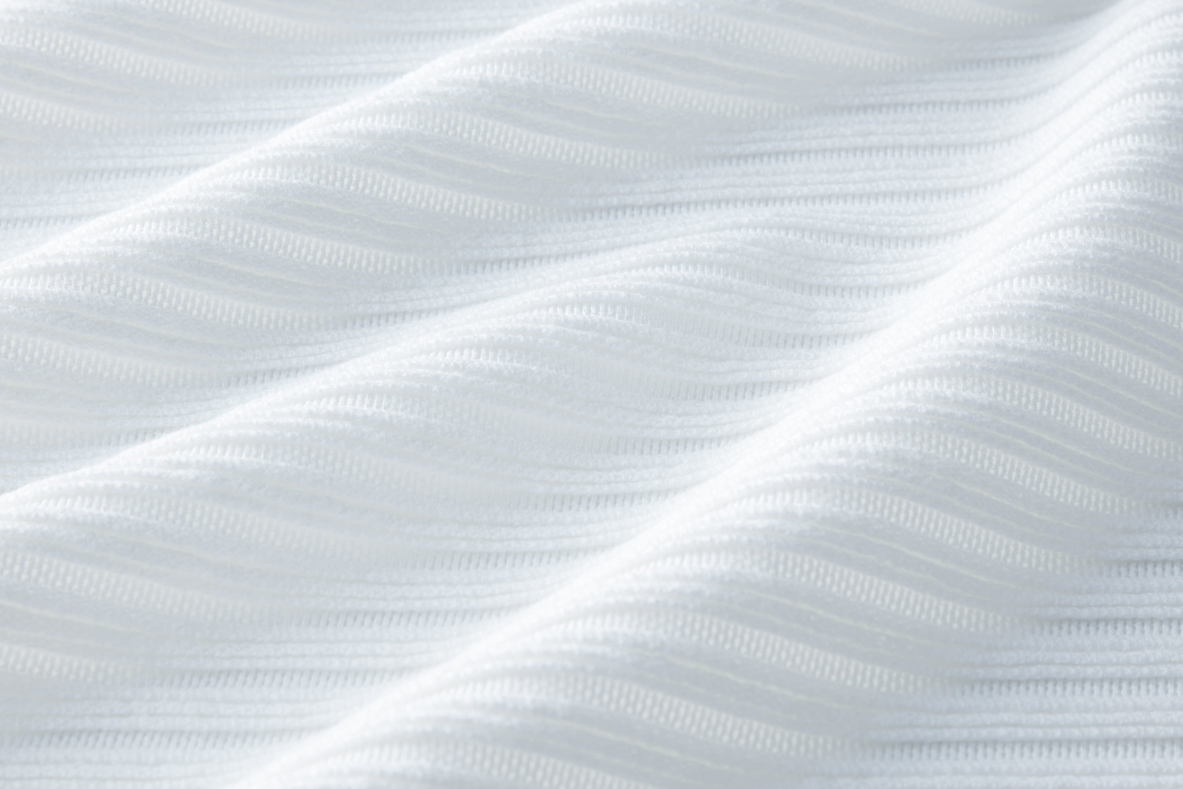 ラジエーターの立体的な構造に着想を得て、特殊な凹凸のある編み方を考案。生地全体に施された深いひだの凹凸が、身体への接着面を減らし密着を防ぐため、汗による不快感を軽減します。