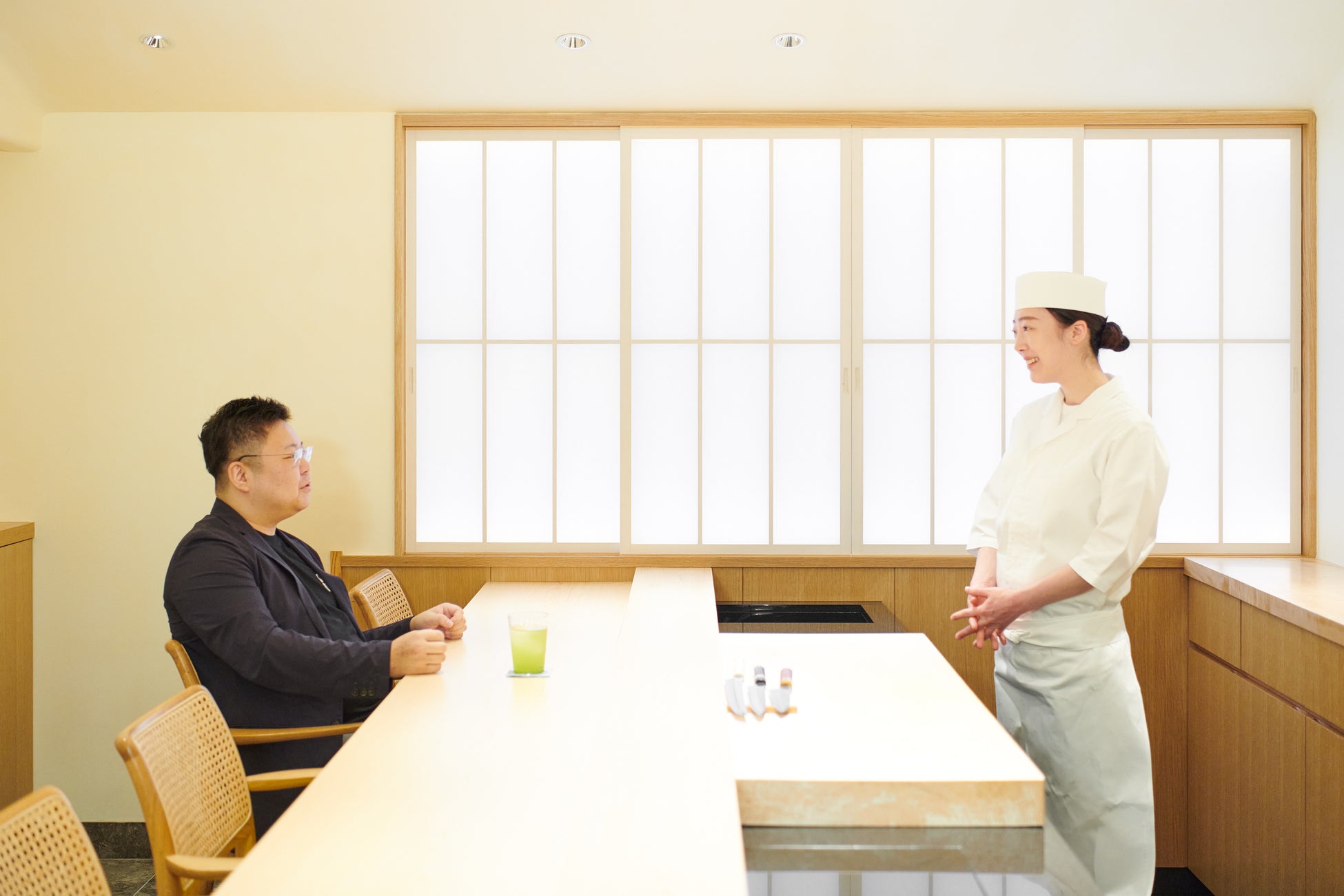 「それはすごく良いサービスですね。忙しい飲食店ほどサービス導入に躊躇しがちだと思うのですが、使ってみるとライフスタイルがすごく豊かになると思います。たとえば〈鮨めい乃〉の従業員は全員女性ですが、高級店で頑張って働きたいけれど体力やライフステージの現実と理想のギャップに直面する女性料理人も多い。だからといって、大将の私が全てを担って疲弊するのも違うなと。それならば片付けはヒトタメにお願いして、次の日の営業を元気に始められる方が心身ともに健全ですよね。飲食店で働く仲間が、自身の暮らしまで大切にできるようになってほしいと思っています。」