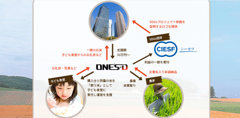開発途上国で教育支援を行う 公益財団法⼈ CIESF (日本事務局:東京都渋谷区、理事長:大久保秀夫、以下シーセフ) は、株式会社ワンズディー(以下:㈱ワンズディー)が展開する「救う米」プロジェクトに参画します。本プロジェクトに参加する企業が、日本の地方創生から国内の子どもたちへの支援、そして海外の教育支援と、多角的なSDGsの活動として取り組むことができる社会貢献の機会を提供します。