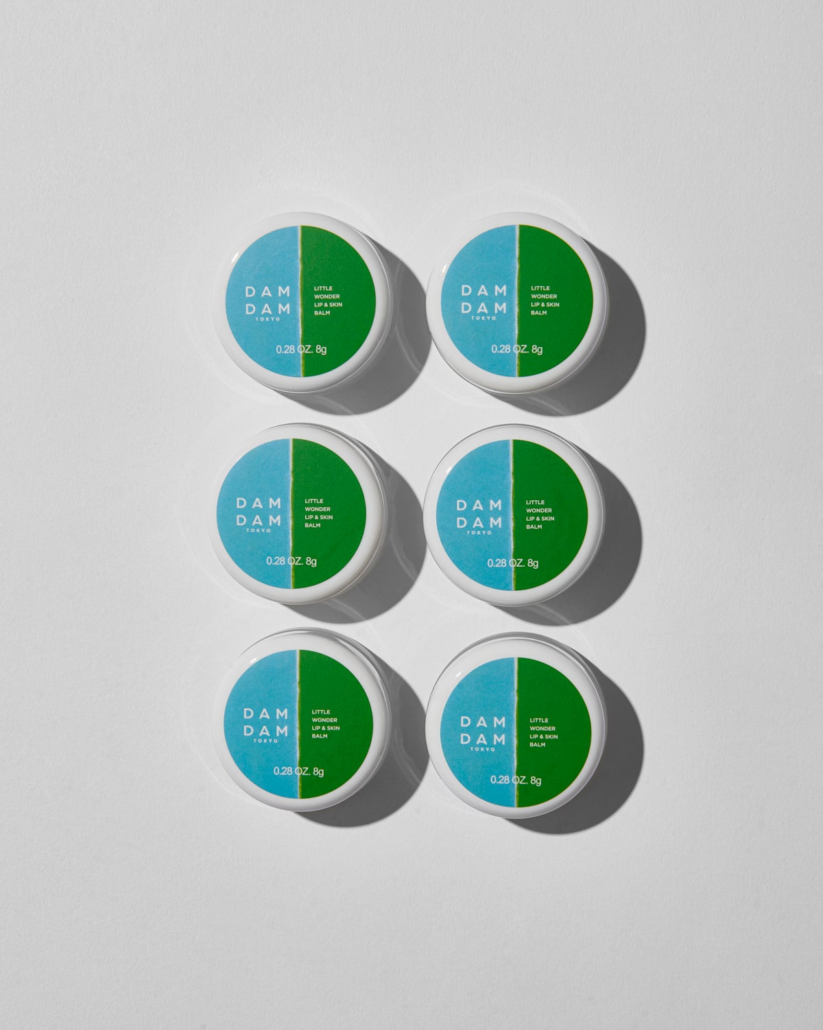 DAMDAMでは、明治時代に日本で色彩理論を提唱した画家・和田三造氏による、バランスと二元性の考えにインスパイアを受けています。「リトルワンダーリップアンドスキンバーム」では、木々や山々を意味する緑と、空や海を意味する青の2色を採用。自然界に存在するカラーパレットは、気分や感情を落ち着かせます。また普遍的なデザインは、ジェンダー問わずお使いいただけます。