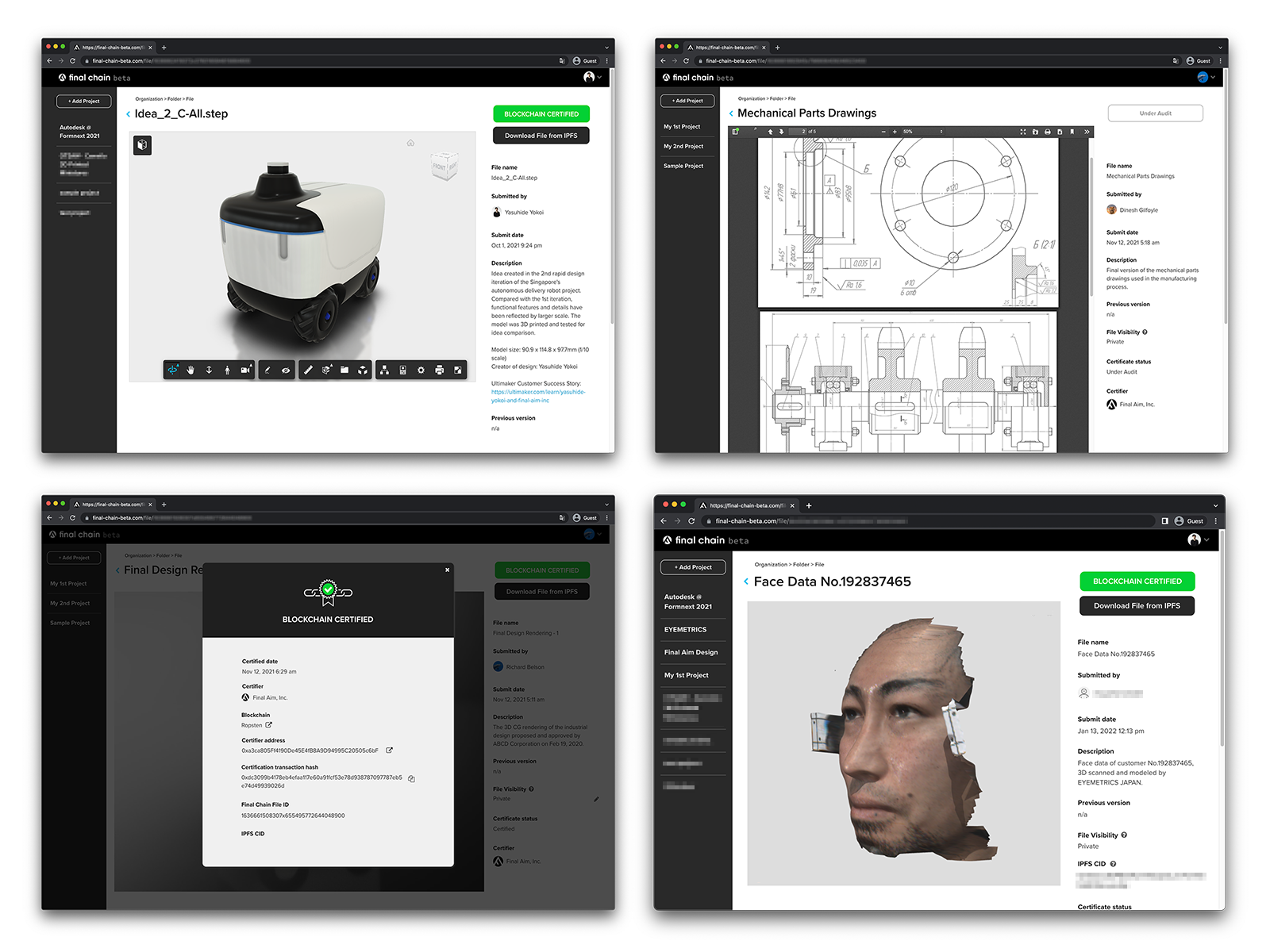 そして2021年11月には、弊社が実践してきたナレッジやノウハウを盛り込んだ、デザインとデジタル製造業のWeb3プラットフォーム“Final Chain”のベータ版を発表し、国内外への普及を進めております。