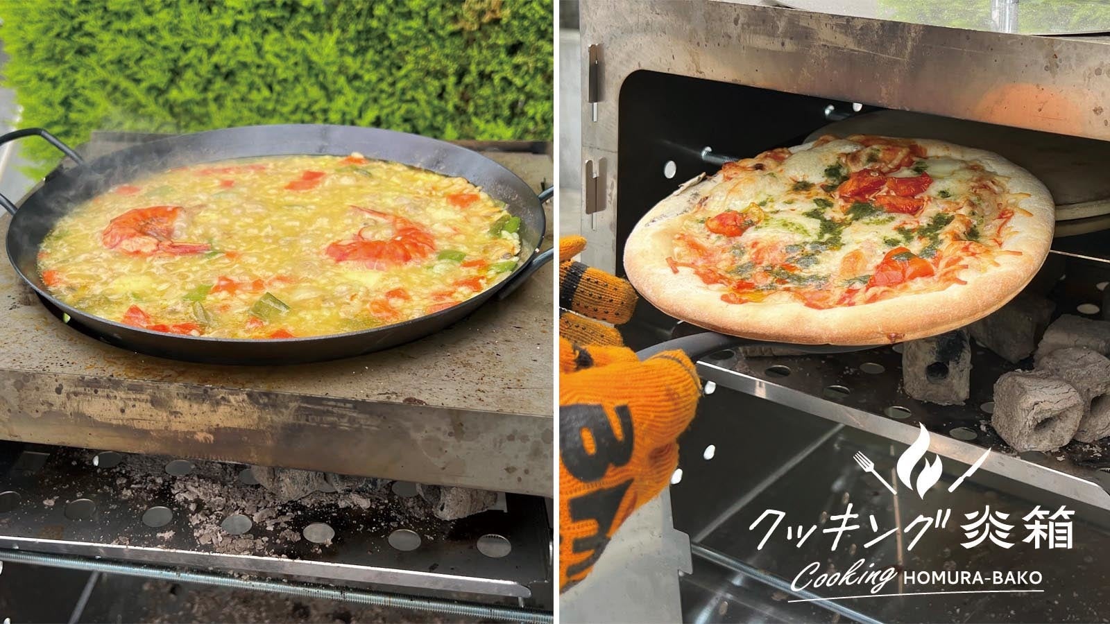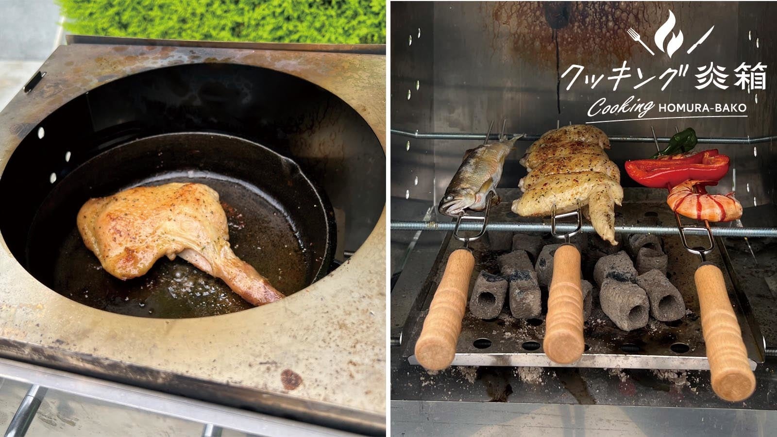 クッキング炎箱(ほむらばこ)」は当社の大型焚火台「炎箱(ほむらばこ)」のデザインイメージを踏襲し、料理をメインに楽しむために、新たに開発いたしました。