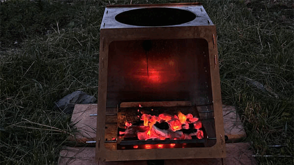 まさに、炎箱デザインがアウトドアクッキングツールの形として最適です!