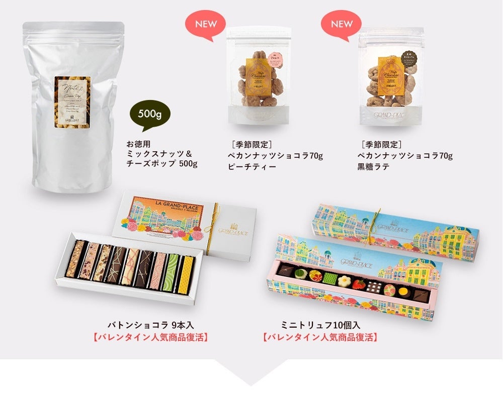 好評をいただいたバレンタイン商品を数量限定で復活し、ペカンナッツショコラの新フレーバーに、人気のお徳用ナッツが入った特別なセット!