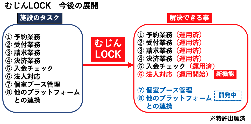 このたび、法人顧客向けに施設を運営する事業者からの要望で、新機能「法人顧客対応版」を実装しましたので発表いたします。この商品・サービスを通じて企業におけるDXを更に加速していきたいと考えております。