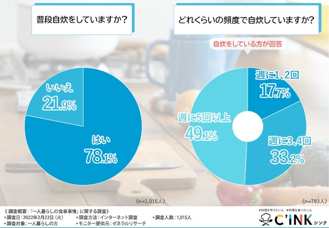 「普段自炊をしていますか?」と質問したところ、『はい(78.1%)』『いいえ(21.9%)』という結果になりました。
